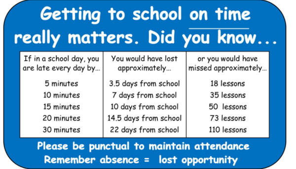 Parents have a legal duty to ensure that their children attend school regularly and arrive on time. Regular attendance is essential to the all-round development of the child, and they should be allowed to take full advantage of educational opportunities available to them in order to make good progress in their learning. Poor attendance undermines their educational attainment and progress and, sometimes, puts pupils at risk by encouraging anti-social behaviour. In all cases of absence, we need parents to contact us by 9.20am with a reason for the absence. The register is a legal document, and we have to code each absence accurately. Please do not tell us your child is ill if you are actually on holiday. If we do not hear from parents by 9.20am, we will initiate our First Day Calling procedures. If we still don’t hear from parents, we will visit the home for a welfare check.