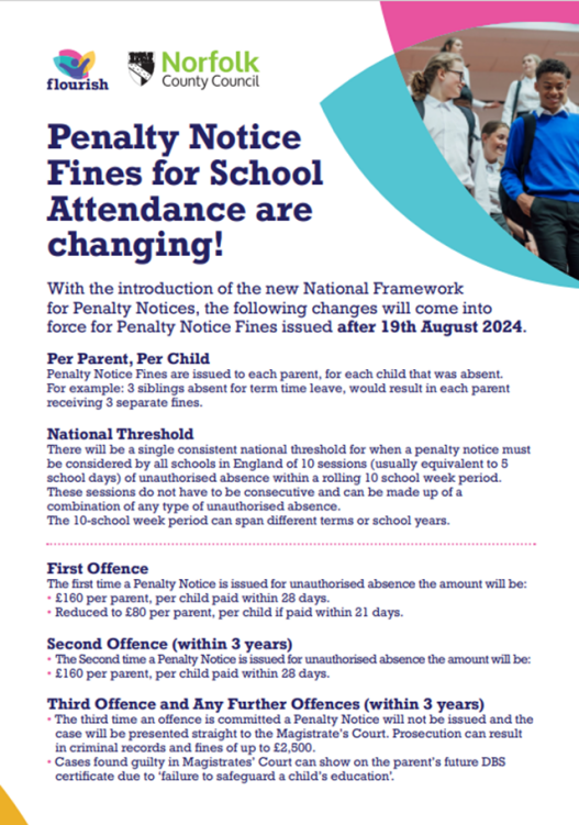 If your child has 10 ‘U’ or ‘O’ codes in 50 school days, we will continue to work with you to support your child’s attendance. Alongside this, we will also refer to outside agencies to work with you. A fixed penalty notice may also be applied at this stage, should attendance not improve.